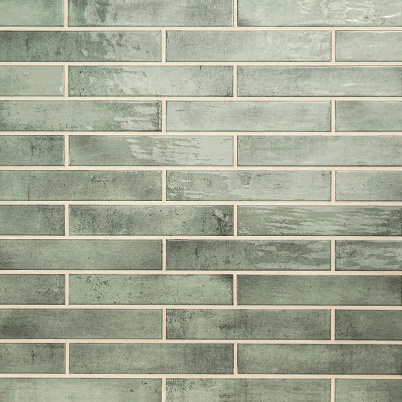 This 2x10 slim-format tile made of glazed ceramic offers unmatched design flexibility whether stacked, offset, or arranged in herringbone patterns. From striking stand-alone works like spa-inspired shower surrounds to wonderful combo-backsplashes, STELLA EMERALD ensures low upkeep and high-high impact decor. It is also the perfect complement to gold, natural wood, and crisp white.